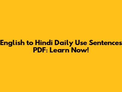 English To Hindi Daily Use Sentences PDF: Learn Now!