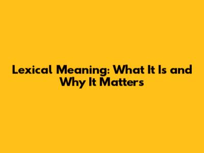 Lexical Meaning: What It Is And Why It Matters
